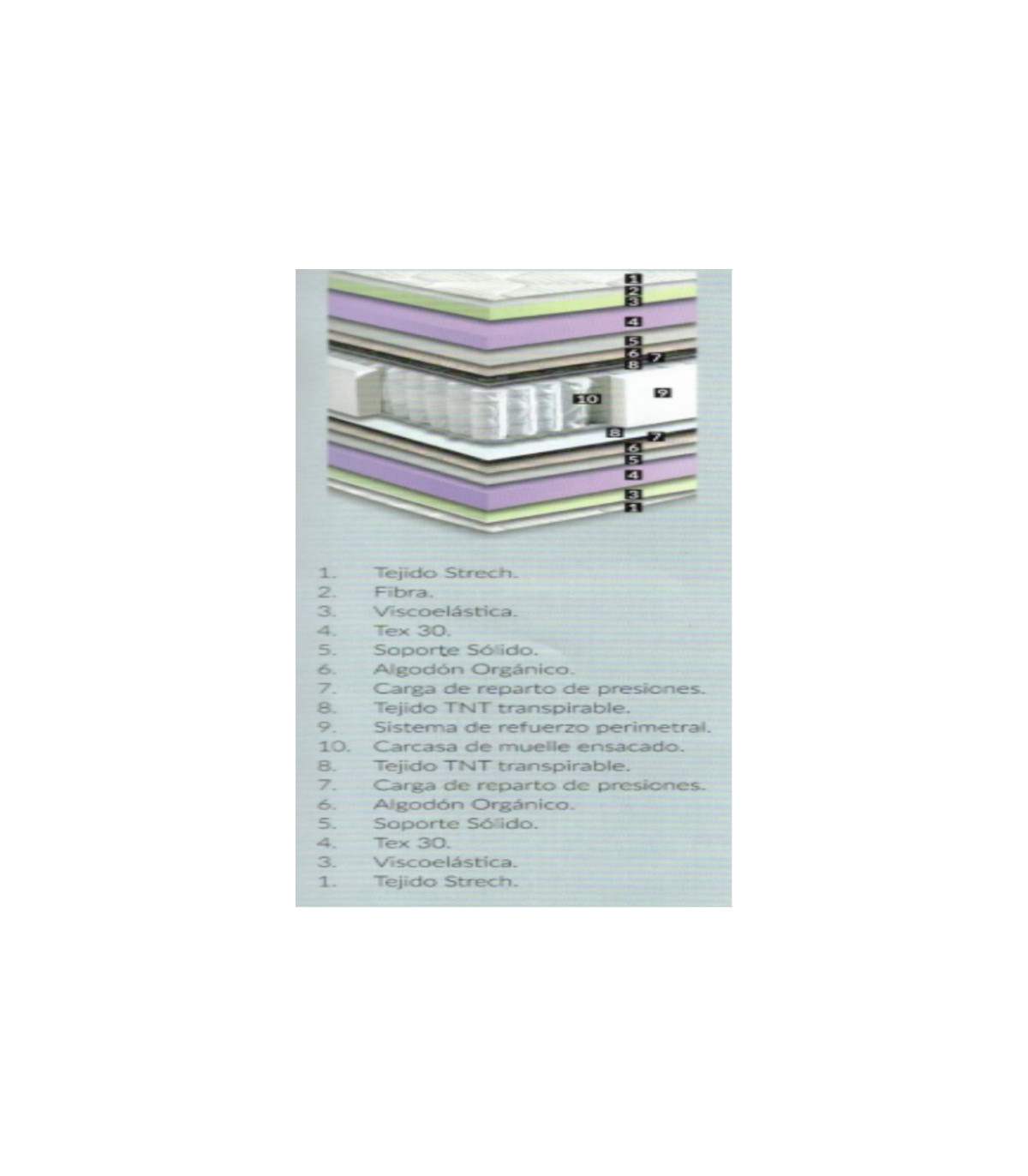Acolchado con material viscolastico que ofrece una sensacion de suave, aunque en este colchon hemos preferido la sensacion de mas firmeza. Este colchon esta pensado para personas que les guste un colchon firme pero amoldable y que no se hunda.