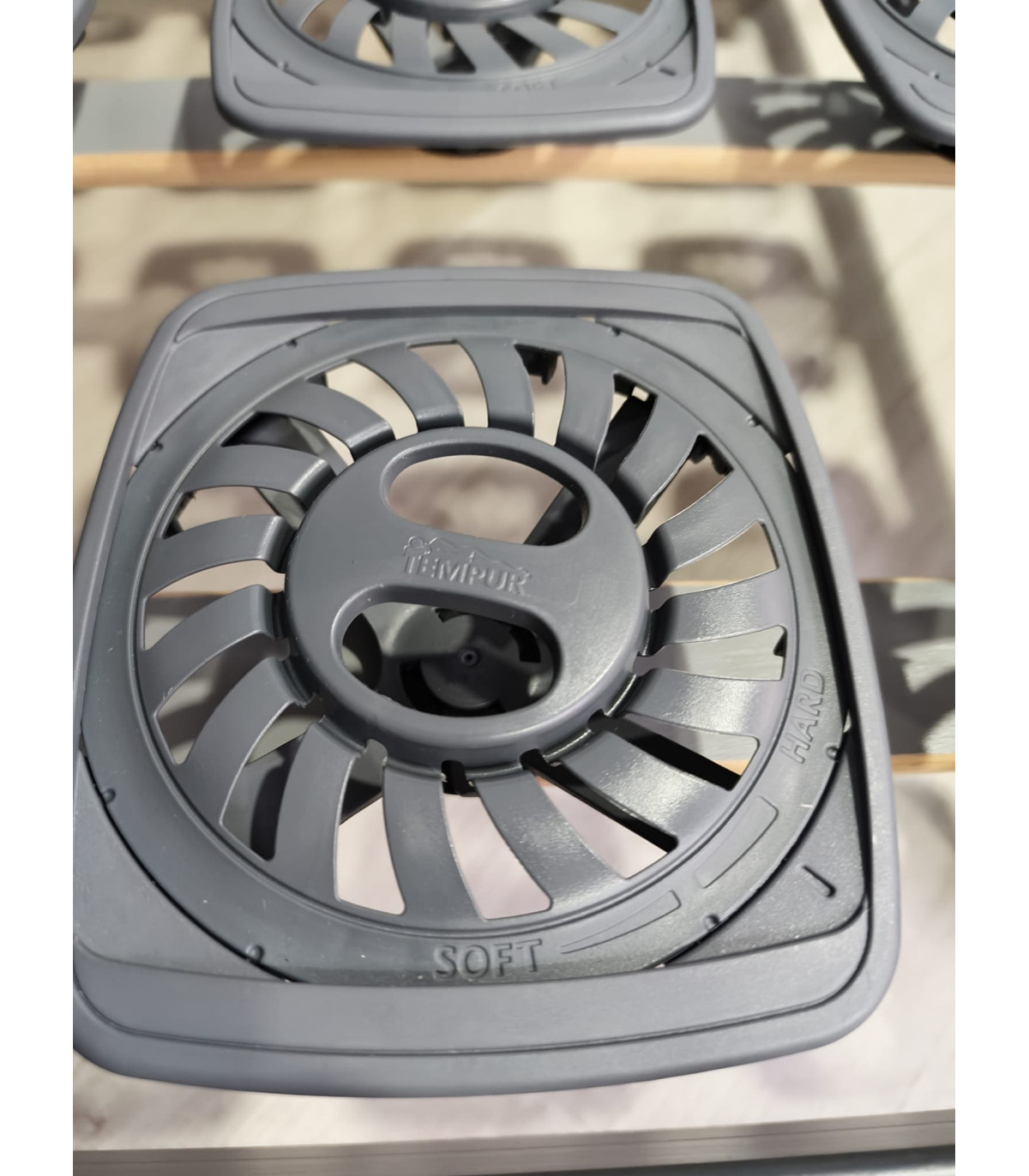 - Gracias al sistema TPS (Muelles Premium Regulables), se puede personalizar la firmeza de cada plato, eligiendo entre tres grados de firmeza (Soft, Medium o Hard) para un soporte a medidas.
